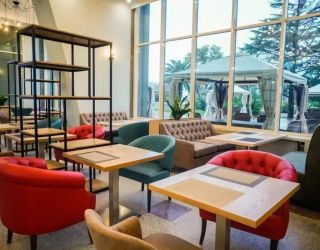 Питание гостей в отеле Amza Park Hotel Гагра организовано в столовой, где готовят завтраки, обеды и ужины. Дополнение к ним – меню кафе и бара, где приятно побывать на закате дня.