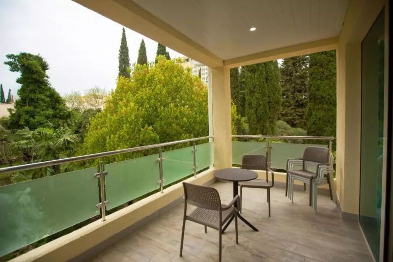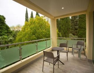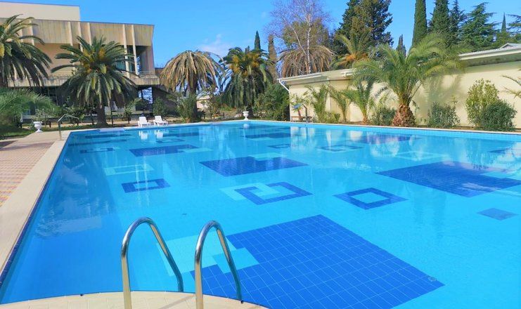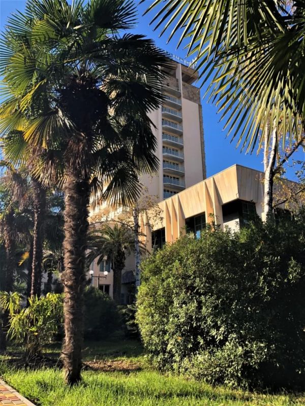 На большой по площади территории Amza Park Hotel Гагра возвышаются 3-этажный (Левое крыло) и 12-этажный (Правое крыло) корпуса, в которых одновременно могут расположиться 630 гостей. Здания окружены пальмами, прогулки по аллеям открывают вид на живописные склоны гор. В двухместных номерах есть необходимая современная мебель и бытовая техника. С балконов открывается морская панорама.