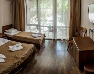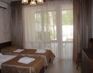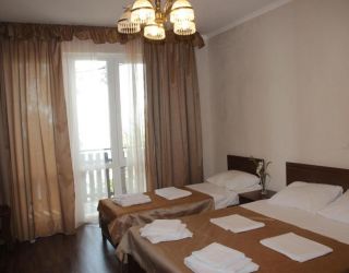 Собственная территория гостевого дома огорожена и благоустроена. Здесь, в тени высоких эвкалиптов, стоит трехэтажный жилой корпус в итальянском стиле. В его жилом фонде – 14 просторных номеров категорий «люкс» и «стандарт» с балконами или террасами. Все гостиничные номера оборудованы отдельными санузлами с душем и необходимым набором бытовой техники: кондиционером, мини-холодильником и телевизором.