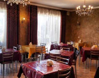 Местом питания в отеле служит основной ресторан, есть еще бар, зона барбекю для желающих самостоятельно приготовить шашлык, торговый автомат с напитками.