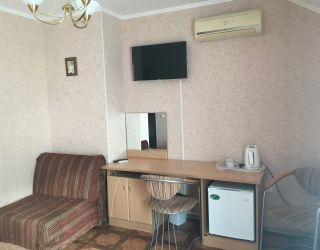 Трехэтажный корпус мини-гостиницы возвышается недалеко от пансионата «Приветливый берег». Жилой фонд, состоящий из 8 номеров, предлагает для размещения комфортабельные уютные комнаты. Все номера с балконами и удобствами — имеется собственный санузел с душем, а комнаты укомплектованы бытовой техникой: везде есть сплит-система, электрочайник, холодильник и телевизор.