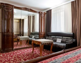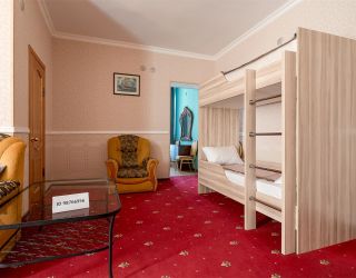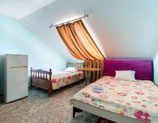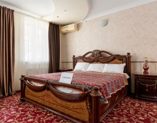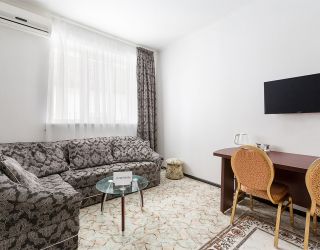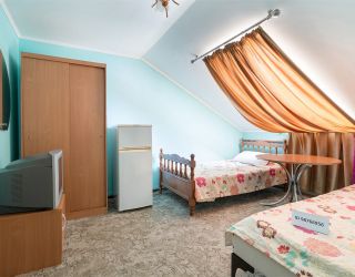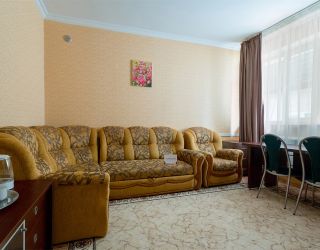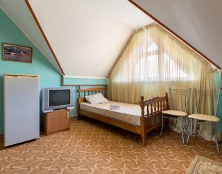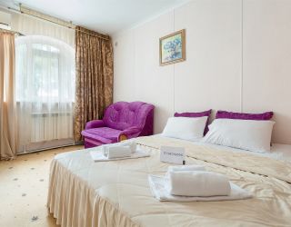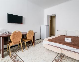 Четырехэтажный корпус отеля расположился среди малоэтажной застройки на тихой и спокойной улице. Жилой фонд предлагает различные категории номеров — от бюджетных вариантов с общим санузлом на несколько комнат до Апартаментов, оснащенных собственной мини-кухней. Во всех номерах установлена сплит-система, есть телевизор и мини-холодильник, беспроводной интернет.