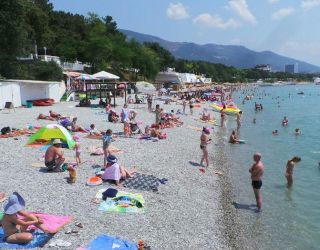 Пляж галечный, с шезлонгами, навесами, солнцезащитными зонтами, раздевалками и различными водными развлечениями.