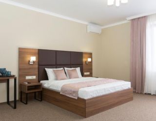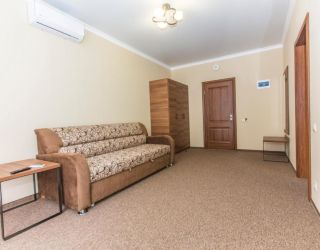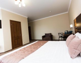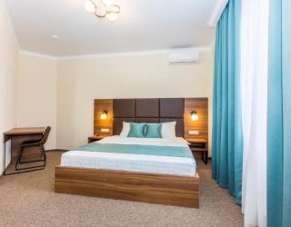 4-этажное здание отеля без лифта вмещает 18 комфортабельных современных номеров категорий Полулюкс 2-местный высшей категории и Люкс 2-местный высшей категории. Все номера оборудованы сплит-системами, отдельным санузлом с феном, тапочками и туалетными принадлежностями, цифровым TВ, телефоном, сейфом, бесплатным wi-fi, набором посуды, утюгом и чайником. Почти все номера имеют выход на балконы, с которых открываются прекрасные виды на Маркхотский хребет и море. В номере можно не только отдохнуть, но и поработать. Во всех номерах оснащено удобное рабочее место.