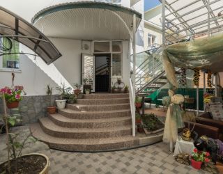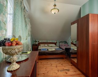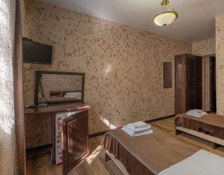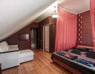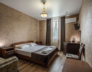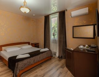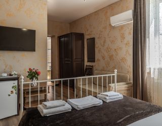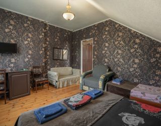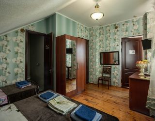 Четырехэтажный корпус гостевого дома с мансардой разместился на небольшой закрытой территории, расположенной среди частного сектора, всего в 180 метрах от моря. Гостей ожидают стандартные однокомнатные и двухкомнатные номера с индивидуальным санузлом. Во всех номерах установлен кондиционер, есть холодильник, телевизор и беспроводной интернет.