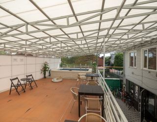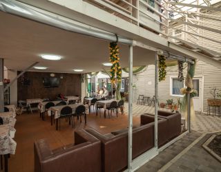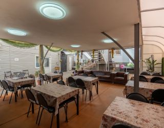 Для удобства отдыхающих на территории организована общая кухня с летней террасой, обустроена зона барбекю с мангалом. К услугам гостей открытый бассейн с гидромассажем, работающий сезонно, для детей организована небольшая игровая площадка.