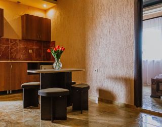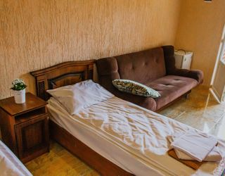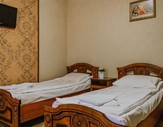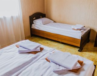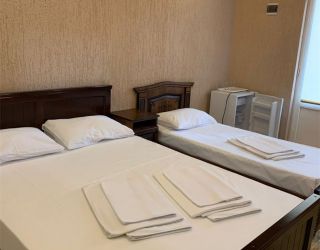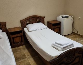 Во всех номерах сделан качественный ремонт, стоит добротная мебель с белоснежным постельным бельем, есть кондиционер, телевизор с плоским экраном, холодильник. В каждом номере своя душевая и санузел. Холодная и горячая вода круглосуточно.