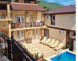 На территории гостевого дома есть плавательный бассейн с удобными современными шезлонгами для загара, зона барбекю, терраса с шикарным видом на Геленджикскую бухту и потрясающий закат. Для комфортного проживания гостей на территории есть кухня, где гости могут самостоятельно приготовить свои любимые блюда. Магазин Пятерочка находится в 50 м от гостевого дома.