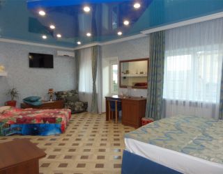 Гостевой дом занимает небольшую закрытую территорию в тихом квартале города. В распоряжении отдыхающих уютные номера разные по площади и уровню комфорта. В каждом номере предусмотрен индивидуальный санузел с душем, установлена сплит-система, в комнатах есть телевизор, электрочайник, холодильник.