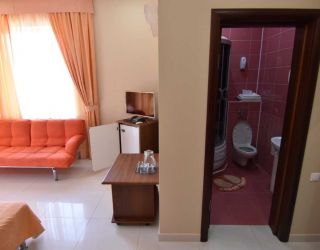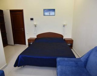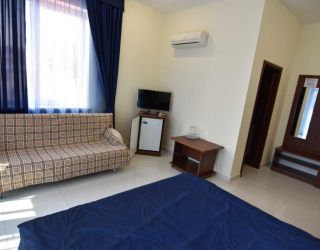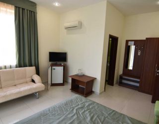 Четырехэтажный корпус гостевого дома включает в себя 12 номеров, в каждом имеется санузел с душем, феном и туалетными принадлежностями, кондиционер, ЖК-телевизор и сейф, в ряде комнат встречаются балконы.