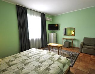 Для проживания отдыхающих предлагается жилой 3-х этажный корпус, вместительность которого составляет 40 мест. Гостиница предлагает номера категории Стандарт 2-местный 1-комнатный и Стандарт 3-местный 2-комнатный. Номерной фонд укомплектован в соответствии с современными гостиничными требованиями: мини-бар и холодильник, телевизор ЖК и кондиционер, ванная комната с ванной феном и туалетными принадлежностями. Современный дизайн и приятная обстановка дополняются достойным сервисом.