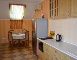 Для постояльцев отеля предусмотрено питание в ресторане пансионата «Приветливый берег», находящегося в 3 минутах ходьбы. Доступна и остальная инфраструктура пансионата: сезонный бассейн с детской секцией, игровые площадки и комната, анимация и оборудованный пляж.