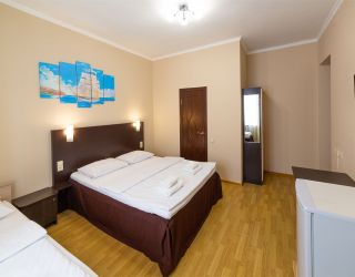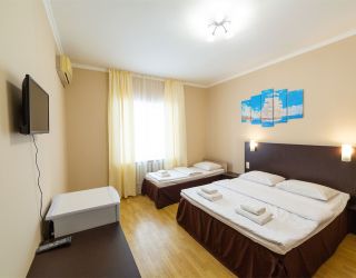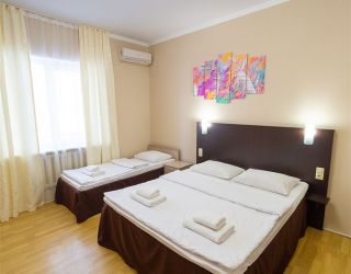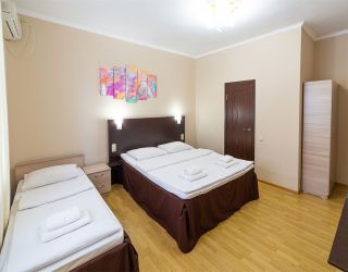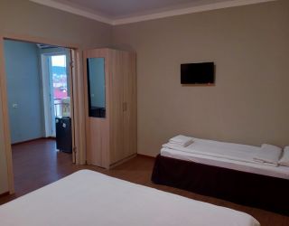 Трехэтажный корпус отеля занимает небольшую уютную территорию в зеленом и тихом квартале города. К услугам гостей 14 номеров с удобствами. Везде есть кондиционер, душ, телевизор и небольшой холодильник.