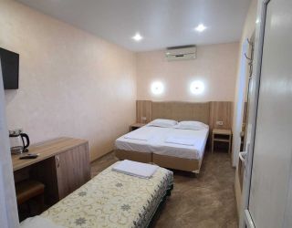 В гостевом доме есть всё для комфортного проживания – собственная придомовая территория, мангальная зона, абсолютно все номера после капитального ремонта, с новой мебелью, в отличном состоянии! Каждый номер имеет собственный вход с улицы. Большинство номеров с выходом на террасы, которые оснащены лежаками, зонтиками и столиками. В каждом номере есть кондиционер, холодильник, электрический чайник, телевизор. По предварительному меню проживающие в гостевом доме могут заказать завтрак, обед или ужин. Меню разработано на 7 дней, что позволит гостям разнообразно и вкусно питаться в период отдыха.