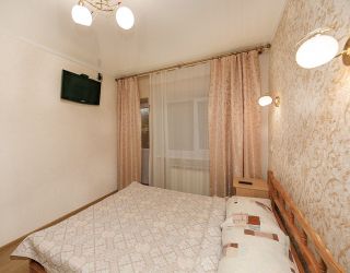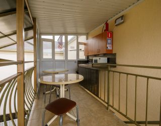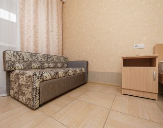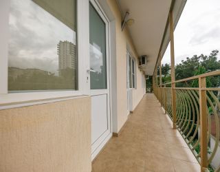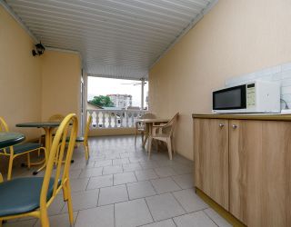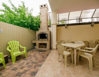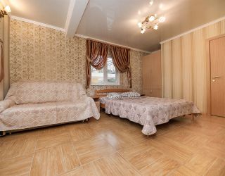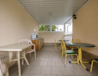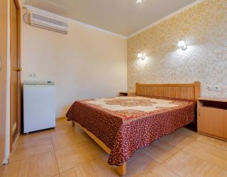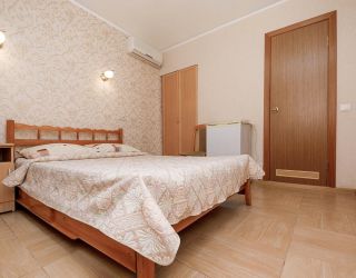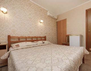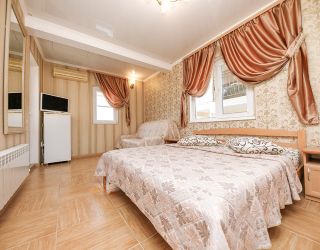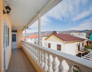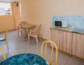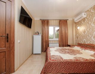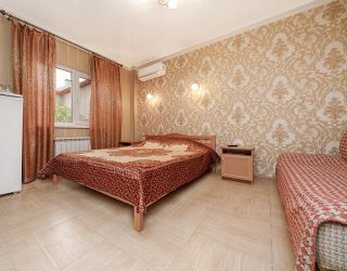 Трехэтажный корпус гостевого дома разместился в квартале малоэтажной застройки. В распоряжении гостей номера разные по площади и вместимости. В каждом номере есть санузел, кондиционер, телевизор, двуспальные кровати и диванчики. Предусмотрен выход на террасу с каждого номера.