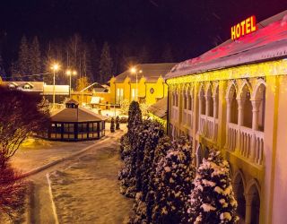 На территории работает ресторан, его залы подходят как для проведения банкетов, торжеств, так и для деловых мероприятий и конференций. В распоряжении постояльцев банный комплекс с финской и травяной саунами, хаммамом, кедровой бочкой, крытый бассейн, площадки для спортивных игр. В отеле есть настольный теннис, бильярд, гостям доступны услуги прачечной, охраняемая парковка и беспроводной интернет. Для детей организована игровая площадка с горками и аттракционами, есть аренда тюбингов, предусмотрена аренда детских велосипедов, самокатов и стульчиков для кормления.