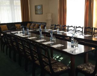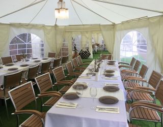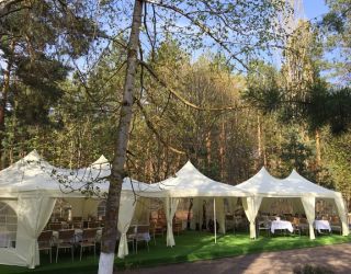 Обеденный зал в кафе вмещает до 100 человек. Гости дома отдыха получают 3-разовое экологически чистое питание. Так же организуются банкеты, свадьбы, корпоративы. Если гостей много, провести мероприятие можно на открытой площадке – в шатрах, которые работают в любое время года. Оборудована летняя площадка для отдыха и пикников с барбекю, мангалом и грилем.