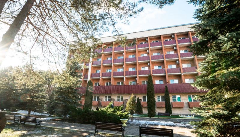 Санаторий занимает территорию площадью 30 гектаров, на которой разместились два корпуса: два из них представляются собой соединенные пятиэтажные здания, а третий, в восемь этажей, связан теплым переходом со зданием столовой. Все корпуса оснащены лифтами. Обширный жилой фонд готов принять 850 человек. Гостей ожидают комфортабельные номера разных категорий, среди них как бюджетные варианты, так и номера улучшенных категорий. В каждом номере имеется санузел с душем, холодильник., телевизор. В ряде номеров отдельно оборудована гостиная.