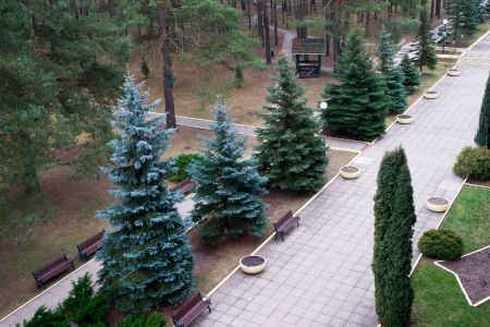 Самолетом до аэропорта г. Минск, далее на автобусе №300э до Автовокзала Центральный, далее на автобусе №535 до поворота на санаторий «Приднепровский», далее пройти до санатория.