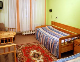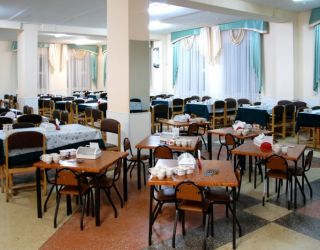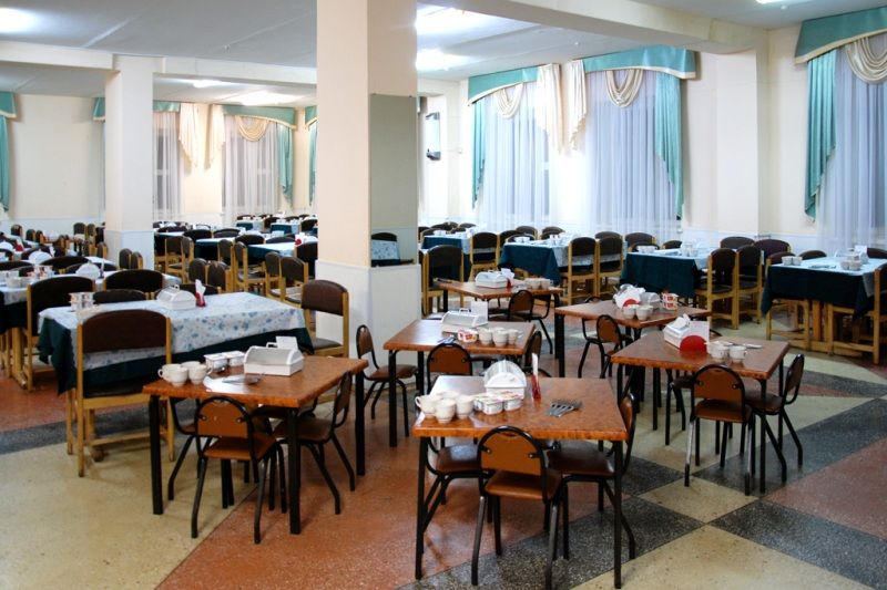 - 5-разовое «меню-заказ» (диетическое питание организовано по показаниям: Диета Б, Диета Д, Диета П, Диета Н; столовая находится в отдельно стоящем здании, которое соединено со спальными и лечебным корпусами)
