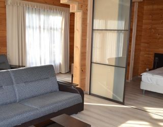 В эко-парке все предусмотрено и для детского досуга – в гостевом доме обустроен игровой уголок, есть уличная площадка с горками, детский бассейн, малышам предоставляются в аренду кроватки-манежи и стульчики для кормления. В 20 метрах от жилых корпусов на территории комплекса расположен собственный пляж, другой – поселковый на озере Тосканка находится на расстоянии 1 километра.
