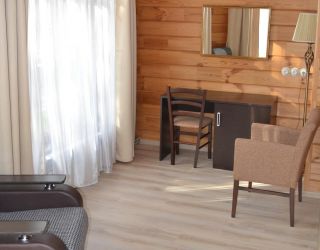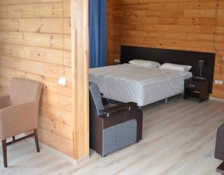 Гостиничный комплекс занимает озелененную территорию среди хвойного и лиственничного леса площадью 8 гектаров. Эко-парк предлагает гостям размещение в деревянных одно- и двухэтажных домиках и коттеджах, и в номерах категории Стандарт и Люкс, расположенных в 2-х этажном гостевом доме. В совокупности номерной фонд отеля рассчитан на размещение более 130 человек. Коттеджные домики оборудованы кухней, меблированной террасой, ванной комнатой. В номерах есть собственный санузел с душем, телевизор, мини-холодильник.