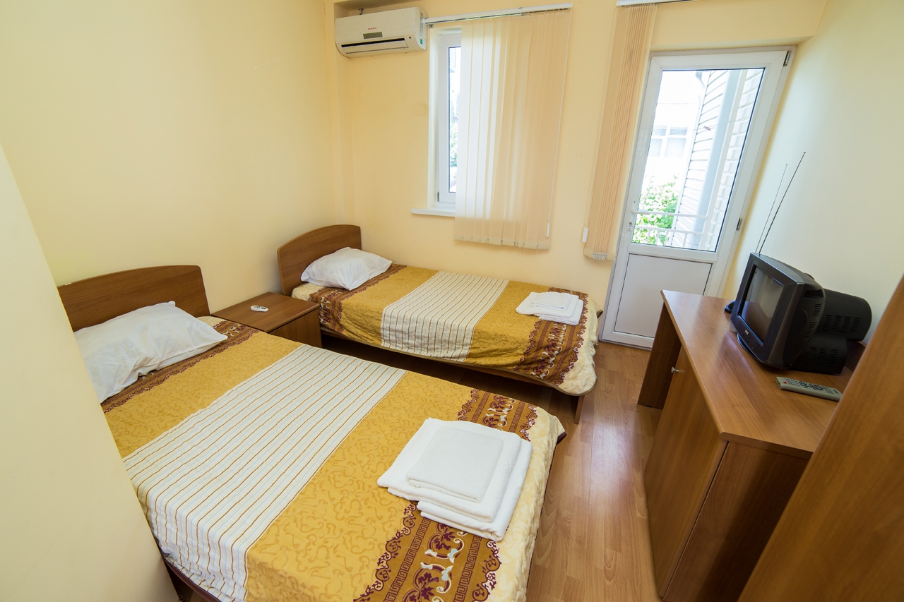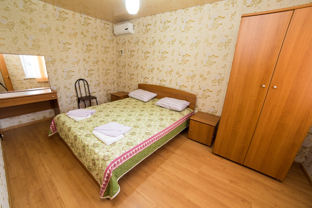Небольшой гостевой дом занимает закрытую территорию. Гостей ожидают двухместные номера Стандарт и четырехместные Семейные, в которых имеются индивидуальный санузел, кондиционер, телевизор и холодильник.