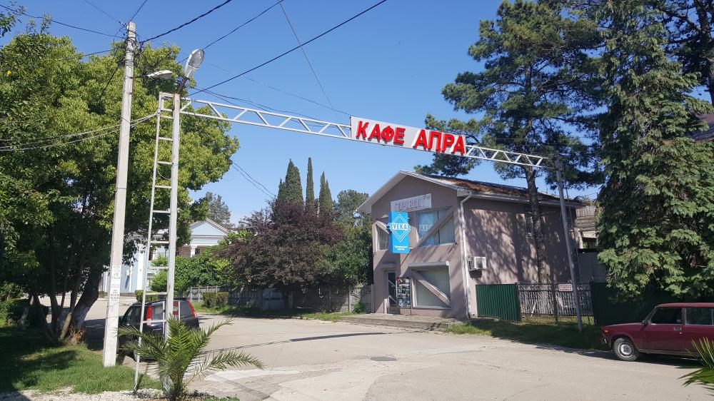 Гостевой дом «Апра» находится в восточной части Гудауты, на второй береговой линии, в районе дома культуры. Рядом — краеведческий музей, городской рынок, есть несколько кафе, продуктовых магазинов, аптек. За час можно доехать до российско-абхазской границы, а до аэропорта Адлера - 80 километров.