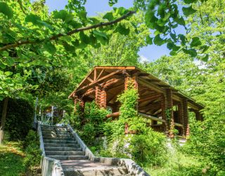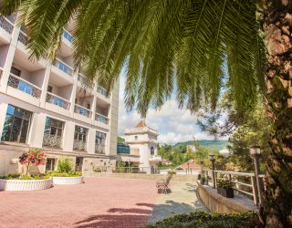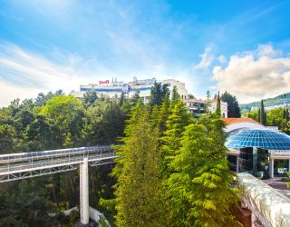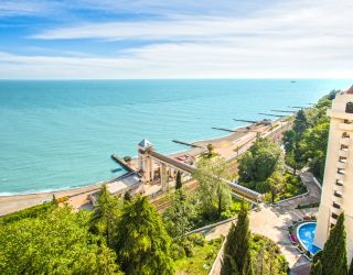 Здравница «Мыс Видный» на южном склоне горы Ахун – изюминка Хосты, российского поселка в субтропиках и ландшафтного района Сочи с напоенным фитонцидами воздухом хвойных лесов и умопомрачительными видами на море и 20-метровые столетние сосны.