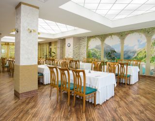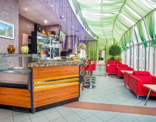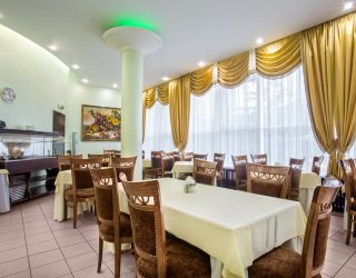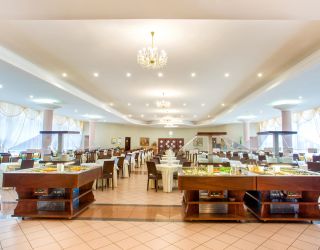 На курорте важно полноценное питание. «Шведский стол» в санаторной столовой – гарантия разнообразного меню по диетическим показаниями. Гостей ждет питательный завтрак, вкусный обед и сбалансированный ужин. В отдельных зданиях на территории здравницы есть кафе и травяной бар.