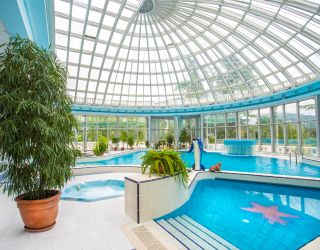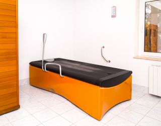 Взрослым в санатории тоже найдется, чем заняться. Есть свой бювет, крытый плавательный бассейн с гидромассажем, водопадом, противотоком. Можно пойти на СПА-процедуры, узнать разницу между финской и инфракрасной сауной.