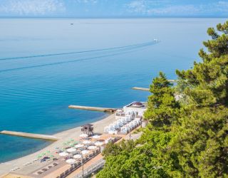 Море, главная достопримечательность находится в 100 м. Достоинство здравницы – свой оборудованный пляж протяженностью 500 м с крупной и мелкой галькой, спуститься к которому можно на панорамном лифте. Пляж оборудован всем необходимым для полноценного отдыха.