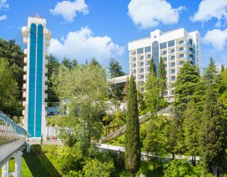 Санаторий с лучшей по оснащенности базой в регионе предоставляет сто и одну возможность соединить приятное с полезным: морской отдых с восстановлением здоровья. До знаменитых сероводородных источников Мацесты отсюда рукой подать, от здравницы до них ехать 15 минут.