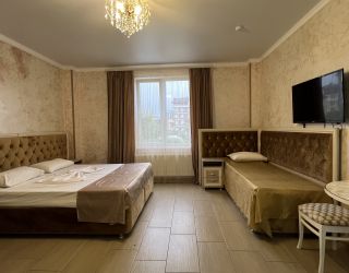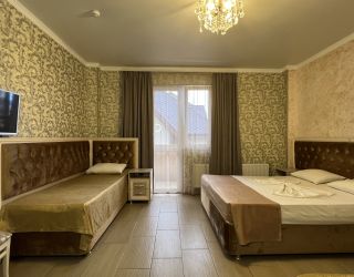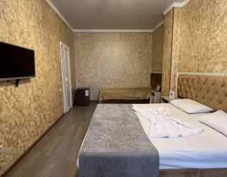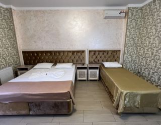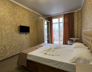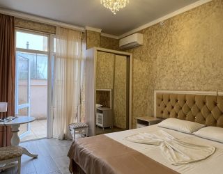 Трехэтажный корпус без лифта разместился на небольшой закрытой территории. В номерах классический интерьер в традиционной пастельной гамме. Комнаты оснащены сплит-системой и собственным санузлом с душем. Везде есть телевизор-ЖК, холодильник, фен, в ряде номеров предусмотрены балконы.