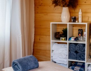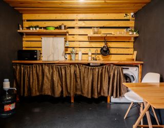 Среди услуг - общая кухня, оснащения всей необходимой техникой и кухонной утварью, имеется кофемашина, кулер, стиральная машина. Гости могут посетить банный комплекс состоящий из кедровой парной на дровах, холодной купели и горячей японской купели Фурако, есть чайная комната, массажный кабинет, а также терраса под открытым небом. Так же территория оборудована общей беседкой, столами, лавочками и садовой качелью.