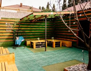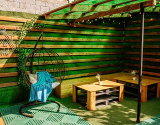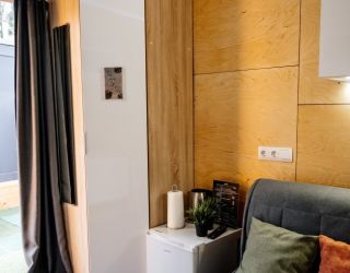 На огороженной территории пять домов, где один трехместный и четыре двухместных. Для гостей предоставляются оборудованные апартаменты с двух и трехместных размещением где есть все необходимое для комфортного проживания: мини-холодильник, чайник, кондиционер, TV, wi-fi, удобная двуспальная кровать. Предоставляется постельное белье, мягкие полотенца и совмещённый с душем санузел.