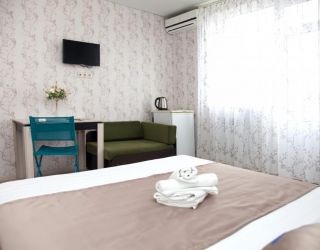 Номера оформлены в минималистичном дизайне где есть все необходимое для комфортного проживания. К услугам гостей большая терраса с шезлонгами на четвёртом этаже, которая отлично подойдёт для загара или занятия йогой, так же вместительная веранда с зоной отдыха для душевных разговоров.