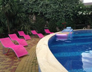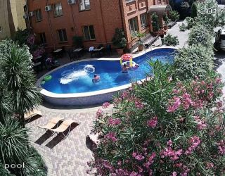Территория гостевого дома просторная и удобная, оборудована для отдыха. Во дворе находится бассейн с шезлонгами, уютные беседки и зоны отдыха, а также специальное место с мангалом. В распоряжении отдыхающих предусмотрена терраса для принятия солнечных ванн. Все гости имеют доступ к Wi-Fi. Для детей оборудована игровая площадка. Ближайший пляж оборудован галечным покрытием, предлагаются шезлонги, навесы, солнцезащитные зонты, раздевалки и разнообразные водные развлечения.