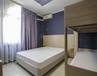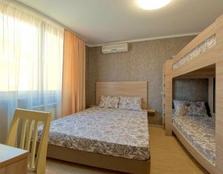 Номерной фонд гостевого дома представлен стандартными номерами, рассчитанными для комфортного размещения 4 человек. Комнаты располагаются в 4-этажном здании. В каждом номере имеется удобное спальное место, рабочий стол, кондиционер, телевизор с кабельными каналами и просторный шкаф для хранения вещей. В дополнение к этому, в собственной ванной комнате гостей ждут мягкие полотенца. Кроме того, в здании гостевого дома доступна общая кухня, где можно приготовить завтрак, обед или ужин.