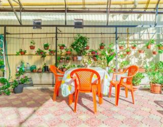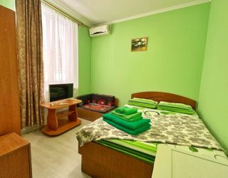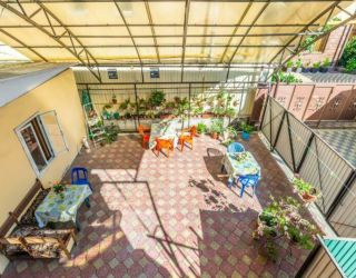 В ухоженном зеленом дворике находятся мангал и летняя беседка. На территории имеется полностью оборудованная всем необходимым кухня для самостоятельно приготовить пищи.