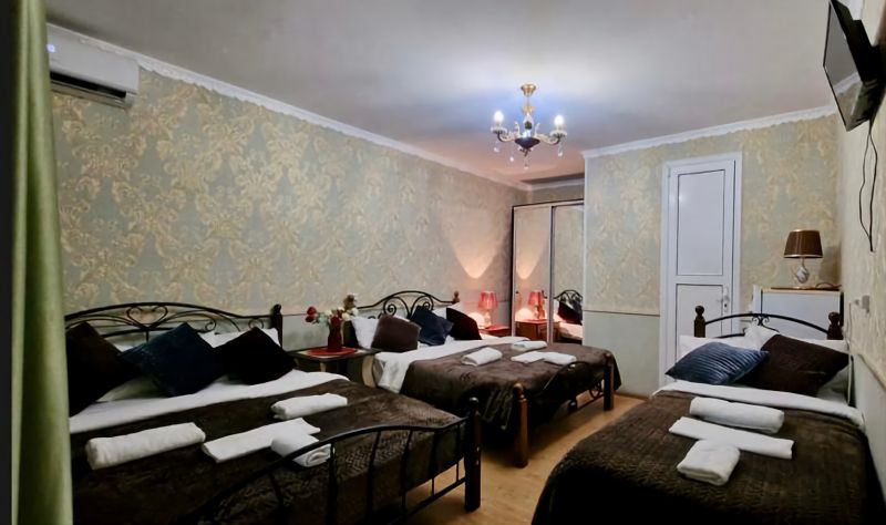 Номера различных категорий оборудованы удобными спальными местами, есть кондиционер, телевизор и холодильник. В некоторых номерах есть оборудованная кухня.