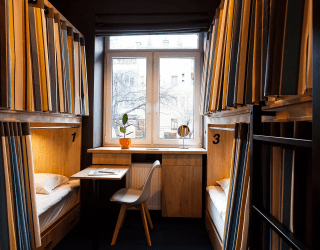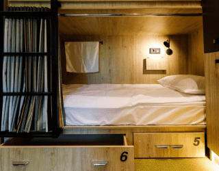 Отель разместился в четырехэтажном здании, расположенном по улице Гостиная. В распоряжении гостей стандартные двухместные номера, и отдельные места в общих комнатах, каждое из которых закрыто плотной шторкой. Во всех номерах стильный интерьер, теплый пол, организованы удобные места для хранения личных вещей и багажа, доступен беспроводной интернет.