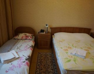 Четырехэтажный корпус отеля расположен среди малоэтажной застройки. Гостей ожидают стандартные номера, каждый из которых рассчитан на 1-го, 2-х или 3-х гостей. Комнаты оснащены санузлом с ванной, телевизором и холодильником.