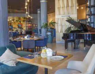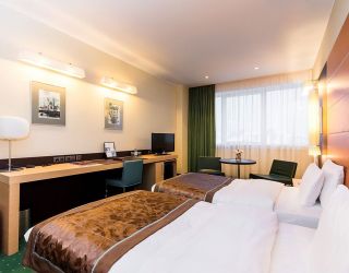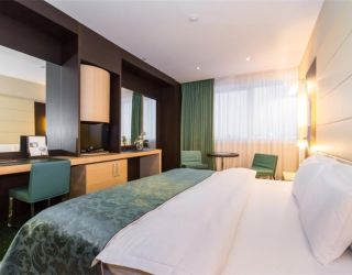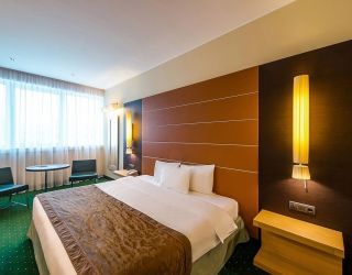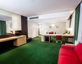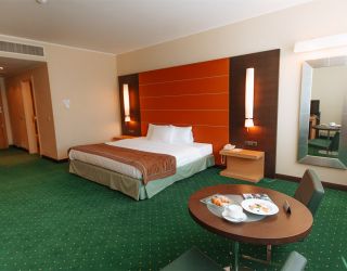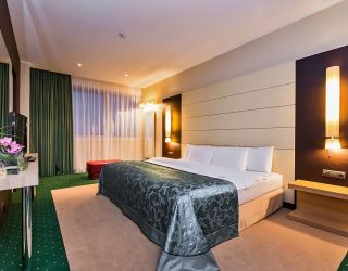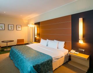 Современное пятиэтажное здание отеля было построено при участие итальянского архитектора. Гостей ожидают номера повышенной категории комфорта — Люкс, Делюкс, Студио и Апартаменты. В номерах классический интерьер, выдержанный в приятных песочных и изумрудных оттенках, удобный мебельный гарнитур, есть кондиционеры и вся необходимая техника. В санузлах установлены ванные с возможностью принятия душа, для гостей подготовлены наборы косметических принадлежностей, Апартаменты и Президентский сюит оснащены кухней.