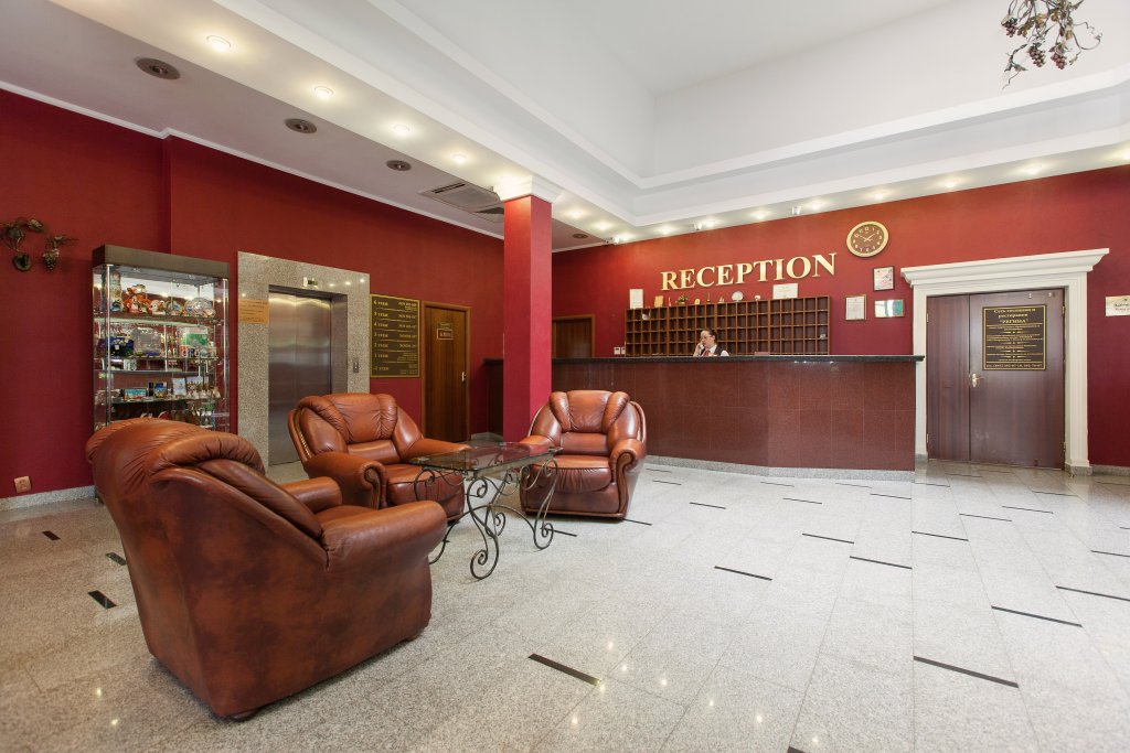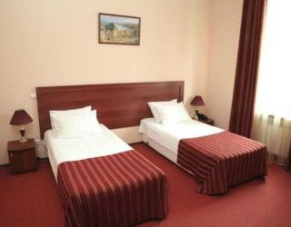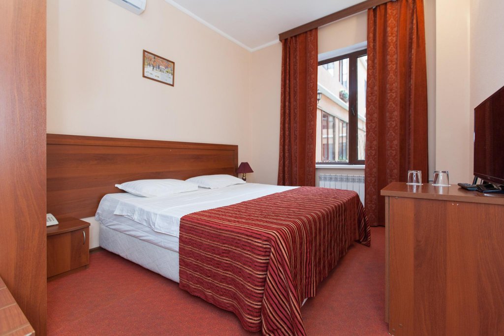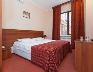 Пятиэтажное здание отеля разместилось на пешеходной Петербургской улице. Жилой фонд включает в себя 75 номеров разных категорий, в том числе есть и бюджетные варианты. Интерьеры комнат полностью выдержаны в спокойных красно-бежевых тонах, везде предусмотрен санузел с душем, в номерах установлены кондиционеры, работающий в жаркое время, телевизор-ЖК и сеть wi-fi.