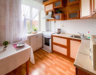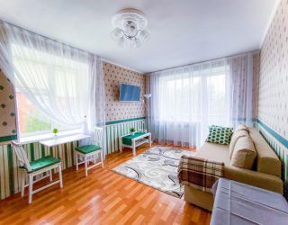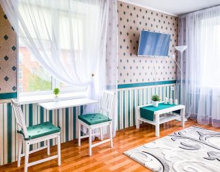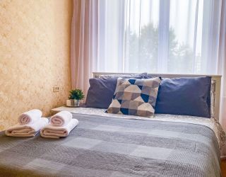 Апартаменты располагаются в 5-этажном жилом доме. Для отдыха установлена удобная двуспальная кровать, в качестве дополнительного спального места предусмотрен раскладной диван. Также к услугам гостей телевизор, утюг, стиральная машина. Работает высокоскоростной интернет. Санузел оснащен ванной, раковиной и туалетом, предоставляются туалетные принадлежности и фен. Чтобы готовить еду самостоятельно на кухне есть плита, микроволновая печь, холодильник и необходимая посуда. Для личного транспорта приезжих возле дома есть места для парковки.