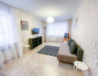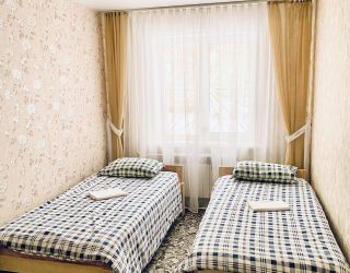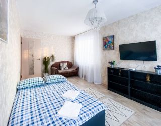 Апартаменты расположились в 5-этажном жилом доме, состоят они из 3 комнат. Спальня оснащена удобной, большой кроватью, туалетным столиком и вместительным шкафом для одежды. Также есть односпальные кровати и раскладные диваны, в качестве дополнительных спальных мест. Гостиная зона оборудована телевизором с плоским экраном, работает Wi-Fi.