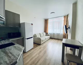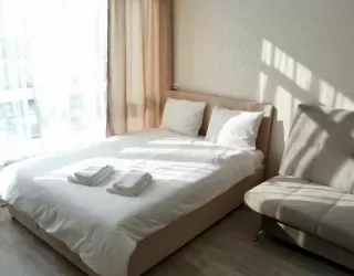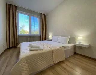 Апартаменты расположились в современном 15-этажном жилом доме с лифтом. Интерьер комнат выполнен в светлых оттенках. К услугам гостей удобная мебель для отдыха, телевизоры, гладильные принадлежности, стиральная машина. Санузел оснащен ванной, предоставляются туалетные принадлежности, есть фен. Работает высокоскоростной интернет. Кухонная зона оборудована необходимой бытовой техникой для самостоятельного приготовления еды, посудой и столовыми приборами. Территория дома оснащена парковкой для автомобилей.