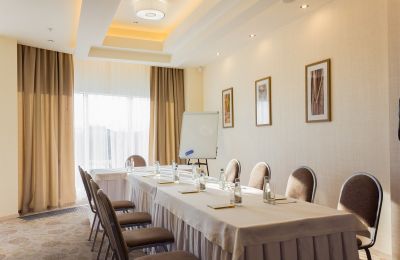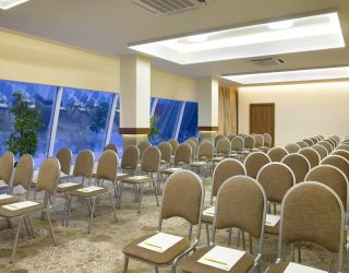Конференц-зал ЭВЕРЕСТ на втором этаже отеля. Площадь 126 м2, вместимость до 120 гостей рассадкой «театр», до 40 гостей рассадкой «класс» и до 30 гостей при П-образной рассадке. Рядом находится просторная лаунж-зона, где накрываются кофе-брейки и фуршеты. Отдельный гардероб, 2 туалета. Презентационное и звуковое оборудование, блокноты и ручки. Зал оснащен системой кондиционирования и приточки свежего воздуха.