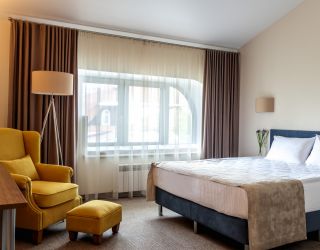 Отель разместился в историческом трехэтажном здании с лифтом. Гостей ожидают двухместные номера категории Стандарт и Комфорт с лаконичными интерьерами, выдержанными в пастельных оттенках. В каждом номере есть собственный санузел с душем или ванной, кондиционер, телевизор и электрочайник.